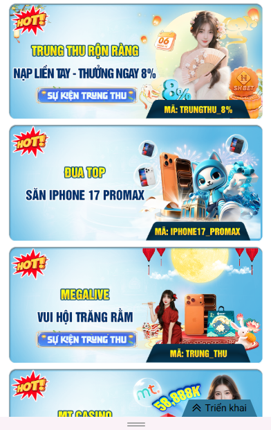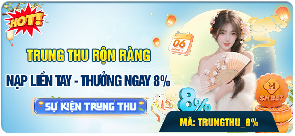 Sự kiện đặc biệt Trung Thu: khách hàng nạp tiền sẽ được cộng thưởng thêm 8% từ SHBet app01. Nhập mã TRUNGTHU để tham gia chương trình ưu đãi giới hạn.